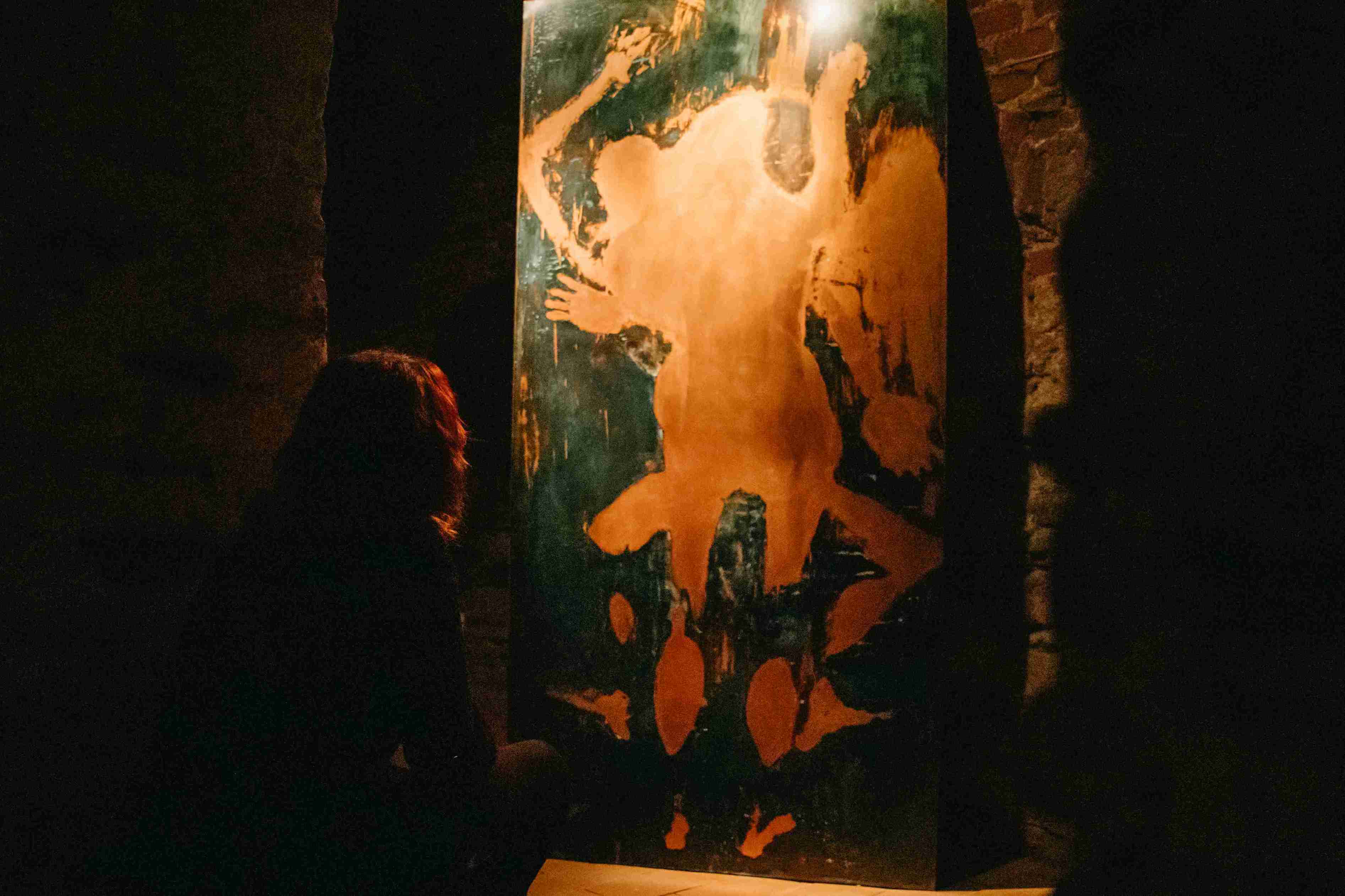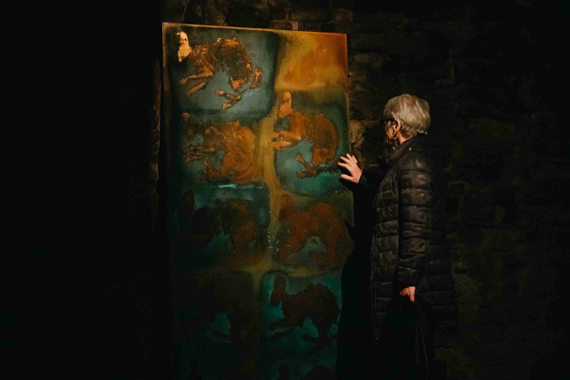 AM: „Telo na otlačku je prítomné a zároveň neprítomné ,je tu ako stopa, ako zvyšok, ako pozostatok minulého času. Zobrazené telá sú pozostatkom udalosti, ktorá sa už odohrala. Cyklus vnímam aj ako reflexiu zraniteľnosti a pominuteľnosti živého tela v kontraste s trvácnosťou kovu“.
