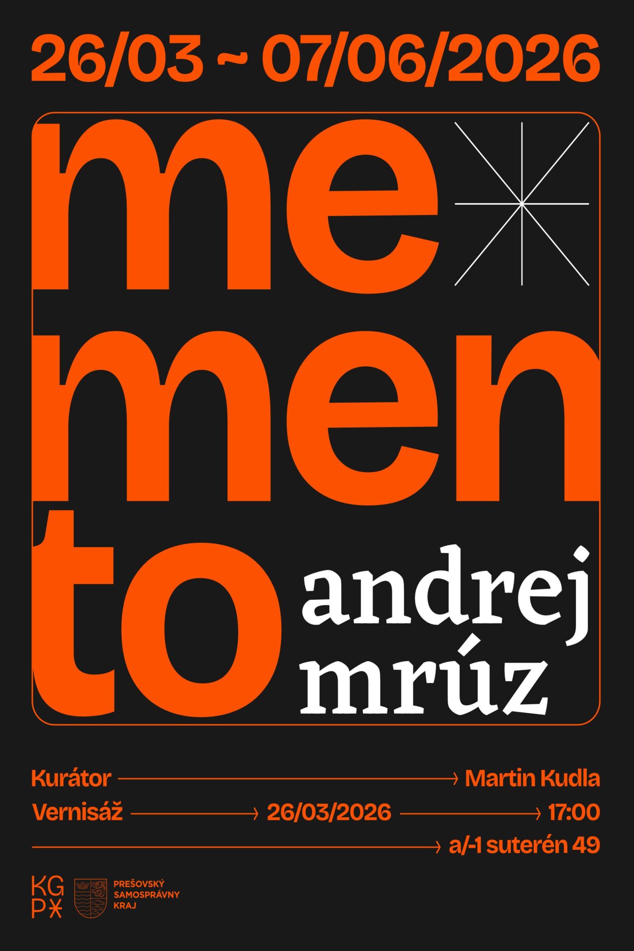Výstava Memento v Krajskej galérii v Prešove predstavuje tvorbu Andreja Mrúza v rámci jeho prvej autorskej prezentácie. Ako autodidakt prešiel viacerými maliarskymi polohami od žánrovej mimetickej maľby až po figurálne hľadanie vlastného výtvarného jazyka. V poslednom desaťročí si venuje osobitej autorskej technike, ktorá je založená na procese otláčania a oxidácie medi.
